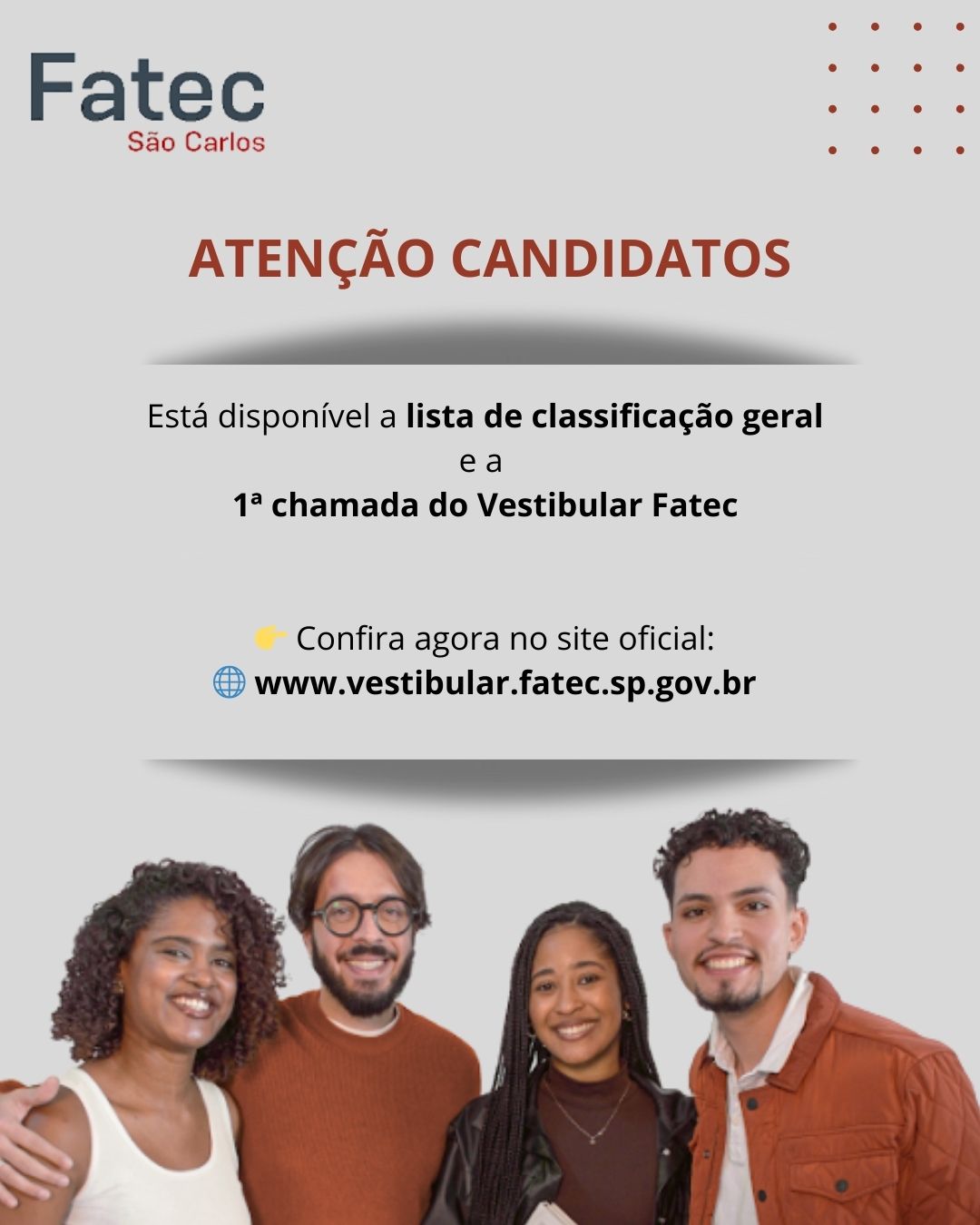 A Faculdade de Tecnologia do Estado de São Paulo – Fatec São Carlos informa que já estão disponíveis a lista de classificação geral e a lista da 1ª chamada do Vestibular.