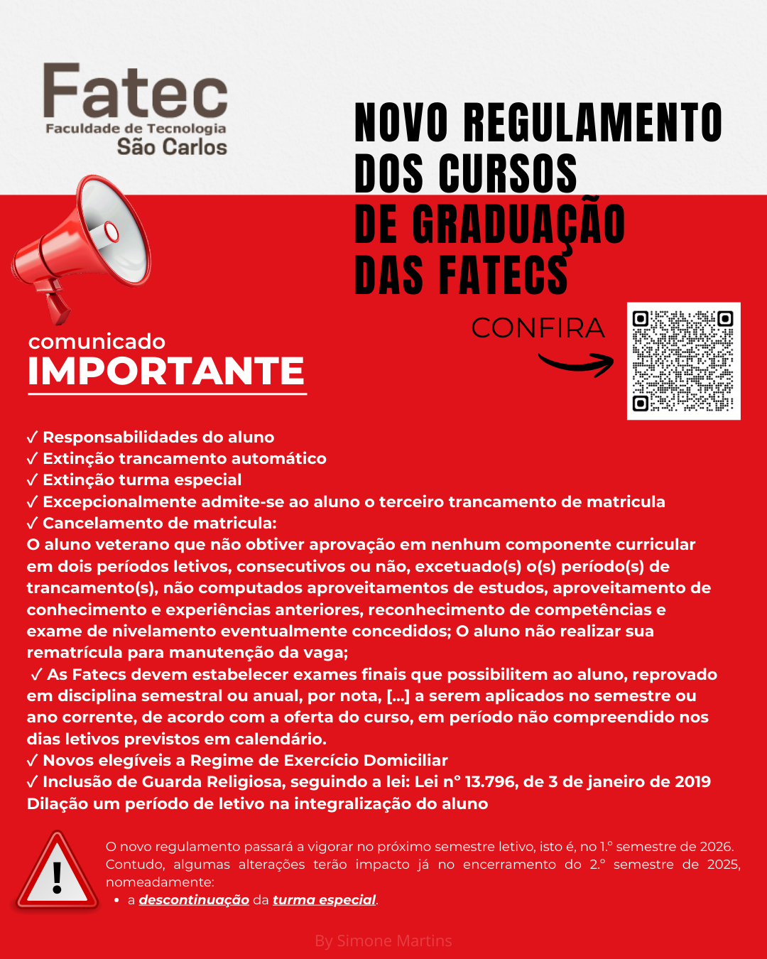 Regulamento Geral dos Cursos Superiores de Graduação das Faculdades de Tecnologia do Centro Estadual de Educação Tecnológica Paula Souza – CEETEPS Informamos que o Regulamento Geral dos Cursos Superiores de Graduação das Fatecs foi oficialmente atualizado. Este […]
